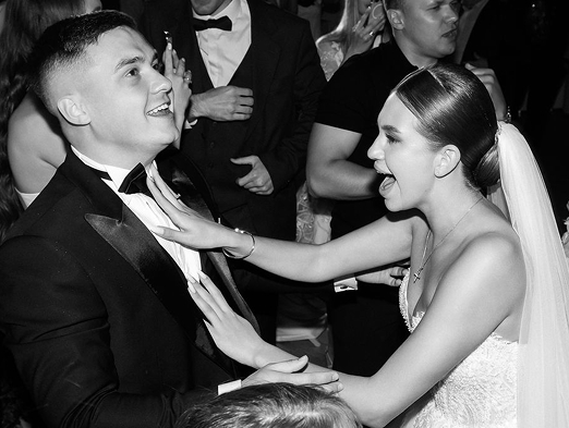 Я знала, чого хочу, але не знала, як це реалізувати на тому рівні, який я бачила в голові. Команда зрозуміла мене з першої зустрічі і не просто виконували завдання — вони думали разом зі мною, пропонували рішення, які я б сама не придумала, і при цьому завжди залишались у моєму баченні. Процес підготовки був чітким і спокійним. У день весілля я не думала про організацію жодної секунди. Я думала про Вову, про наших гостей, про те, який красивий зал і яке все правильне навколо, відчуття повної присутності у власному святі — те, що залишається з тобою назавжди.
