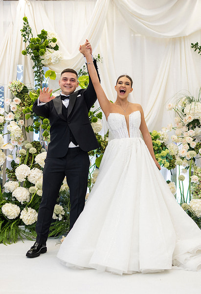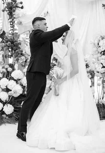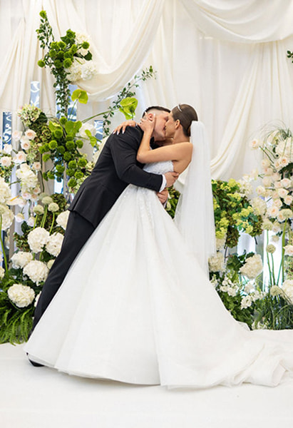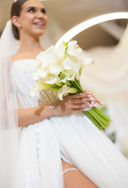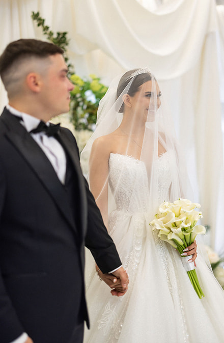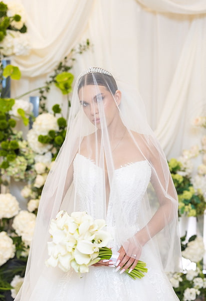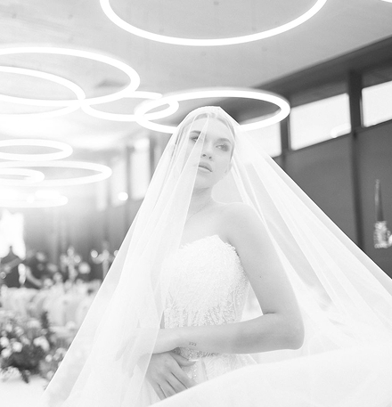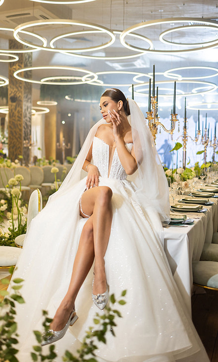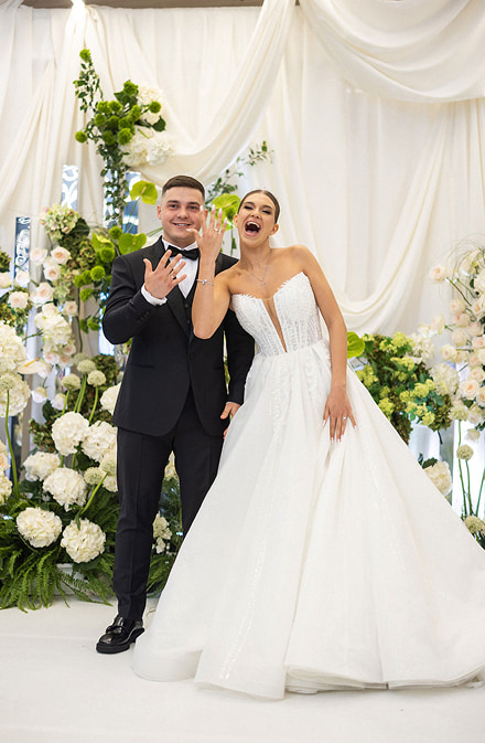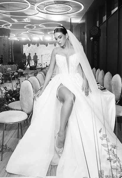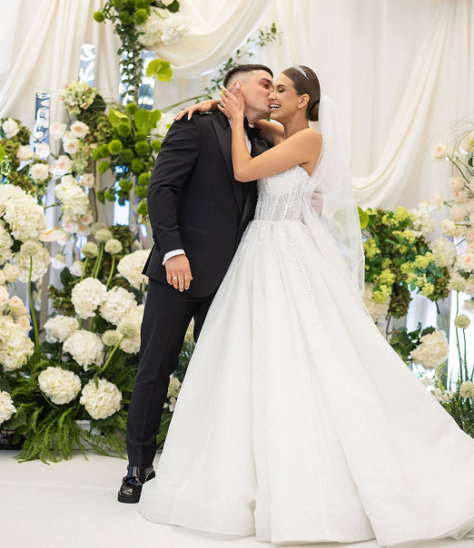 Весілля Володимира та Анни починалось із запаху живих квітів у повітрі і відчуття простору, який прийняв тебе ще у дверях. Біла палітра, витримана від першого квітки до останньої деталі сервірування, не була просто колірним рішенням — вона була настроєм, який гості вдихнули разом із повітрям. Гортензії, кали, ранункулюси і темна соковита зелень піднімались від підлоги до стелі суцільною живою красою, і всередині цього простору хотілось зупинитись і просто насолоджуватись моментом. Коли Анна вийшла в бальній сукні зі шлейфом і тіарою, зал замовк, була та особлива тиша, яка буває тільки один раз за вечір і тільки тоді, коли все зроблено так, як треба. Вона йшла, і все розквітало і в цьому погляді було щось більше за кохання. Флористична арка прийняла їх обох, і в ту мить простір, квіти, світло і люди навколо стали єдиним цілим. Ввечері Анна з'явилась в сукні, коротка, легка і зміна розбудила в гостях саме те відчуття свободи, яке перетворює весілля на справжнє свято. Перший танець Анни і Володимира в золотому світлі прожекторів закрив день із такою теплотою, що нікому не хотілось, щоб музика зупинялась. Такі весілля не описують - їх переживають, історію кохання, котра назавжди залишається в серцях.